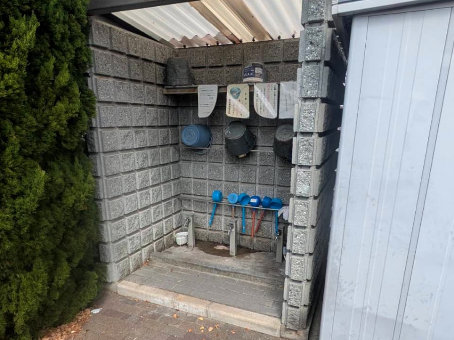 トイレ、水道施設、バケツや柄杓などのお墓掃除の道具が用意されています。ご自由にご使用いただけます。